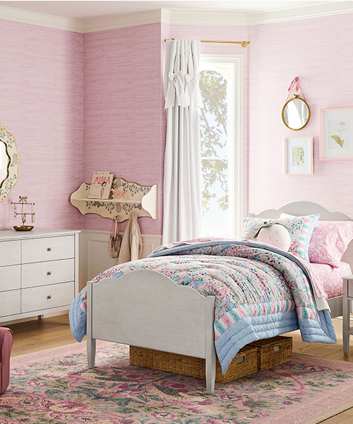 Usher them into sweet dreams with a reversible quilt, featuring ornate blooms on one side and dainty florals on the other.